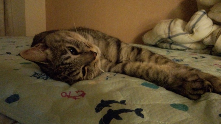 人のベッドで思いっきり寝転がってくれちゃうので、つい一緒に昼寝とかしちゃって何もせずに時間がすぎていっちゃうという…、危険な誘惑に打ち勝つのが大変です(苦笑)