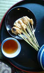 今宮神社ではもうすぐ春季祭があるみたいで、山車や神輿が外に出してあって華やか~な感じでした(^-^)そして、お目当ての阿ぶり餅が2枚目の写真です!こういう、竹串みたいなのにちっちゃいお餅がいっぱい刺さってて、それをあぶって白味噌だれでいただくという代物でした。