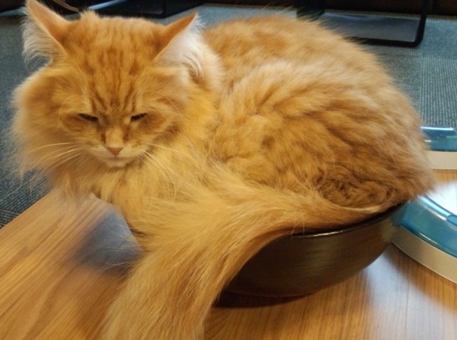 シンガプーラの子(写真下側の短毛の子。ちいちゃいんですよ~2キロないくらい。うちのハルの3分の1!)が膝に乗ってきてくれてむっちゃ嬉しかった(幸)