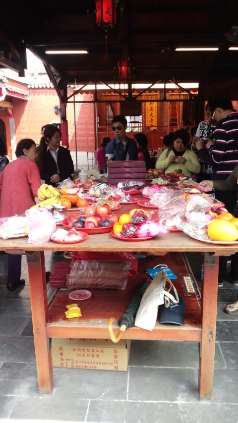 ちなみに、お供え物の置き方も派手(?)で、お供えものを置くでっかい机があって、そのこフルーツとかお菓子とかいろいろなものをお供えしておくのです。で、しばらくお供えしたら取りに来て、おうちに持ち帰り、みんなで食べるそうです。このへんは、日本における「仏壇にお供えしたもののお下がり」の感覚に似てるのかもしれません。