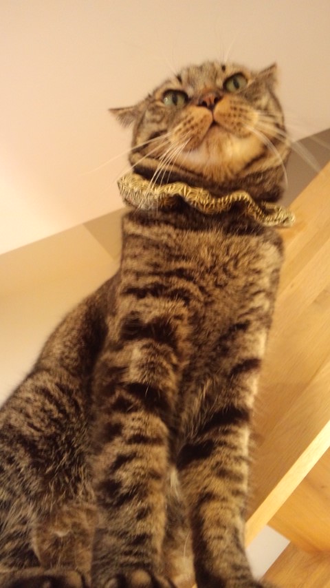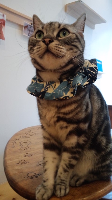 てんちゃんとお年は同じくらいだったので、中年組というか、年齢は大人年齢のにゃんこさんです。このシュシュがまたご隠居感を出していると評判(?)でした。