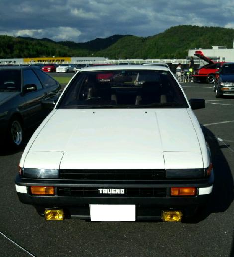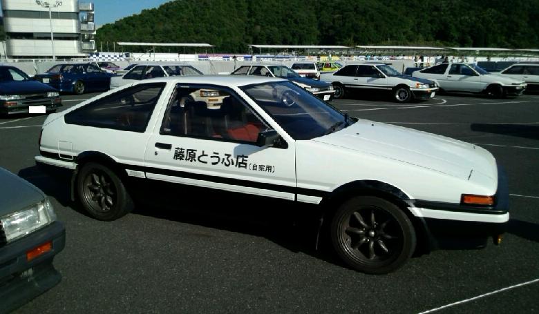 カーランドというショップ(アニマックスでも宣伝してますね)が作った拓海仕様ハチロクと、あと一般参加の駐車場にあった大阪ナンバーの豆腐店ハチロク。(写真のやつです)すごい、愛を感じました!(笑)