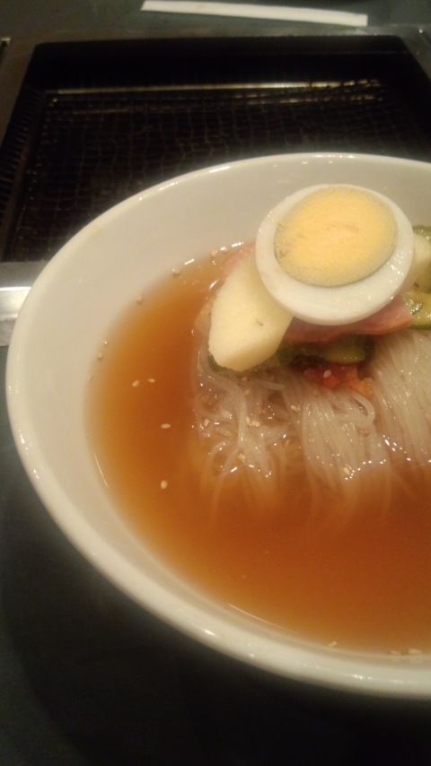 あと、冷麺!私韓国式冷麺っていうんですかね?この写真みたいな半透明の麺の冷麺がむっちゃ好きなんですvvそれがフツウにおいてあるのも嬉しい~。