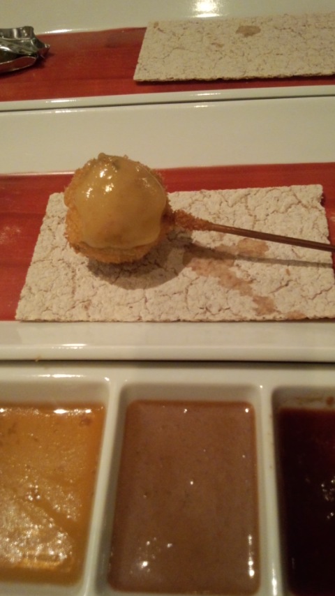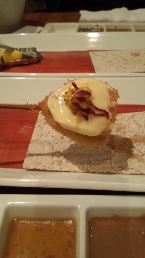 串カツに付けるソースも5種類くらいあって(ソース系、しょうゆ系、塩、レモンなど)、食材ごとにどれを付けると美味しいか教えてくださって。20本多いかな~と思いましたがペロッと完食!美味しかったです!