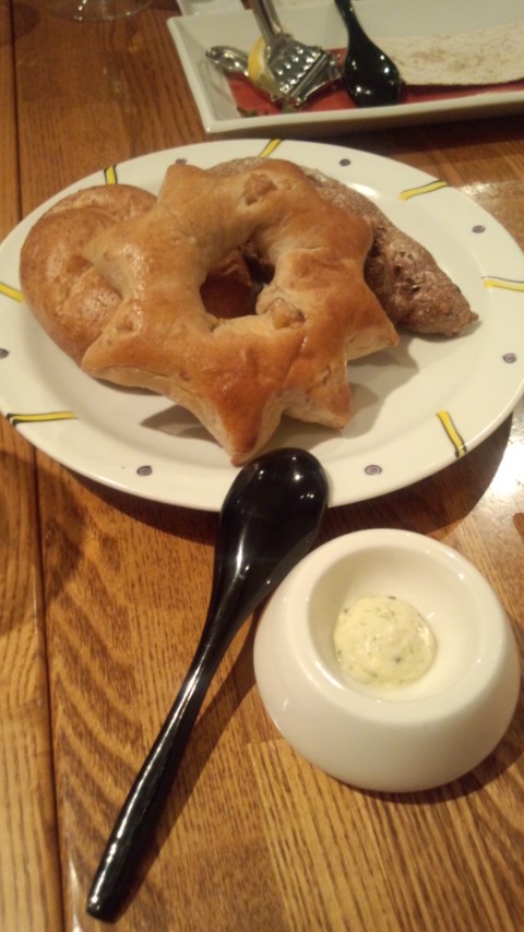 途中、パンが出たり(このパンがまためちゃ美味しい!特にくるみパン。売ってくれ!ってくらい美味しかった~)食後にはデザートが出たりと、串カツをコースのように仕立ててあって新鮮。