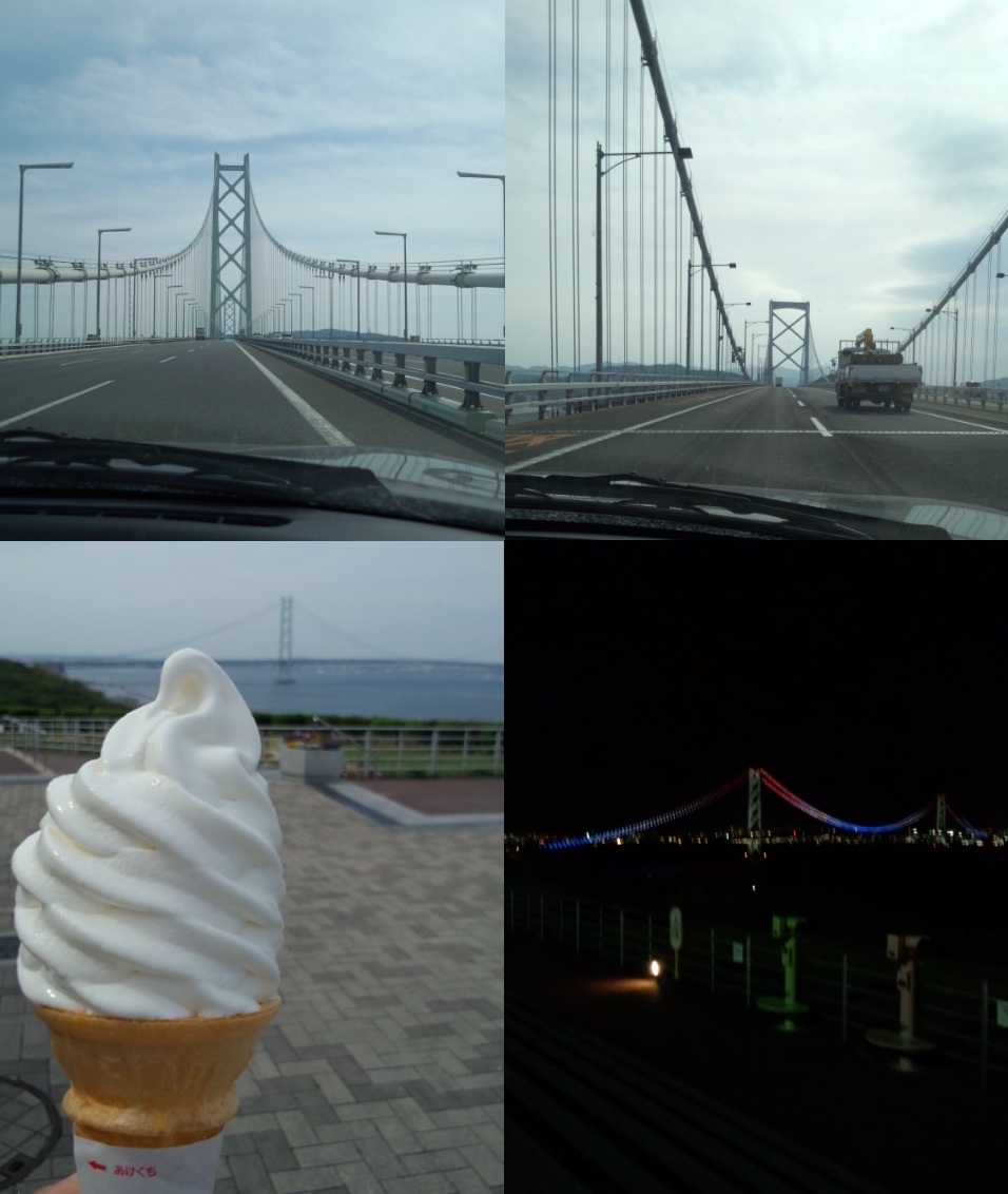 あと、松山は四国なので、明石海峡大橋と鳴門大橋をわたって四国入りしました。橋を渡るとなんかテンションあがりますよね~(ふふvvv)せっかくなので途中の淡路島のSAで休憩して大ちゃんの真似してアイス食べたりとか(笑)しょうもないことしながら四国へ行きました。夜のライトアップもなかなか素敵で、ドライブしがいがありました。
