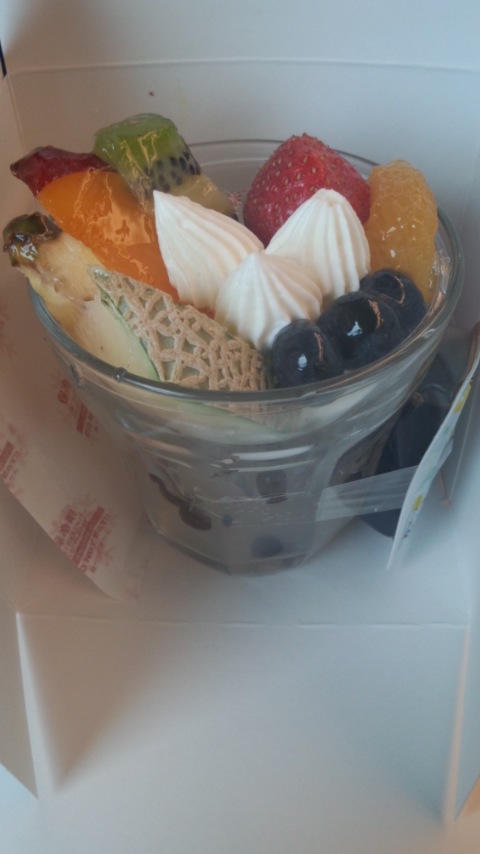 目当てはDのお菓子だったんですが、つい生菓子にも目が行ってしまって帰りの新幹線で食べるように買ってしまいました(苦笑)それが←この写真!フルーツあんみつ。フルーツいっぱいでボリューム満点!でもお値段はお手ごろなんですよvv美味しかったですvv(幸)