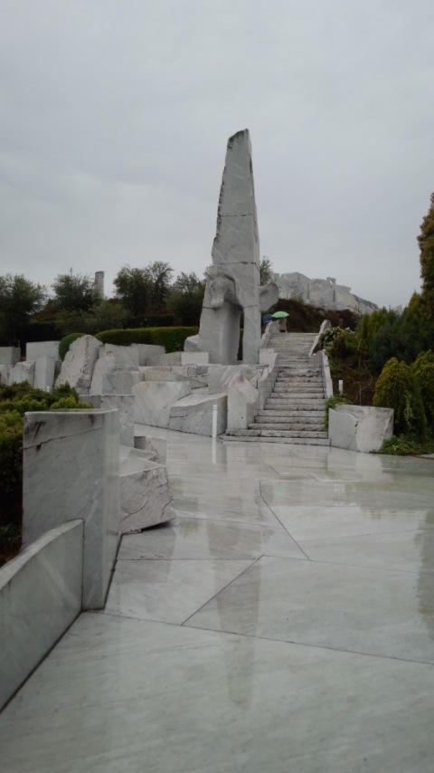 建物もなんですが、「大理石の丘」っていうのがあってですね…。大理石の構造物がいろいろ展示されている場所があるんですよ。そこがまた圧巻でした!あっち見てもこっち見ても大理石なんですもの!向かって左側の写真の、真ん中の塔みたいなやつは「月天を望む猫」という、猫の彫刻?です。なかなか趣があってよかったです。