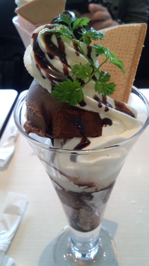 向って左は雪印パーラー本店で食べたチョコパフェ。