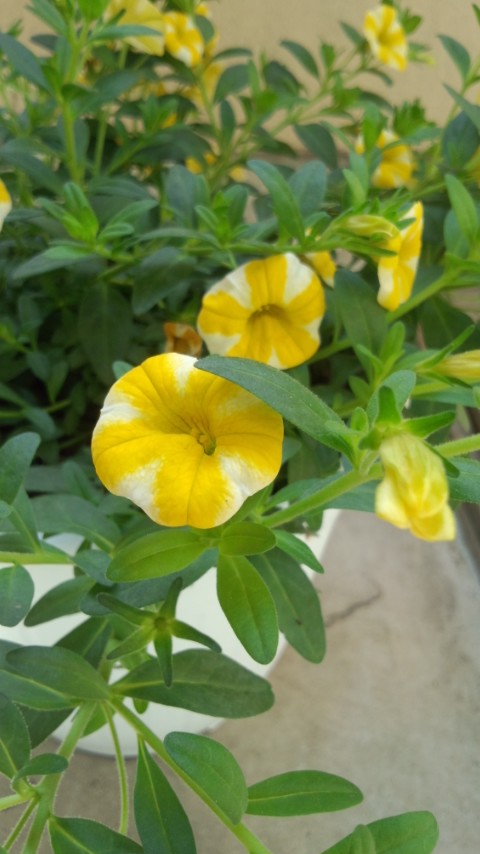 朝顔っぽい外見ですが、朝顔とは違う品種のようです。蔓じゃないし、葉のつき方が全然違うので…。