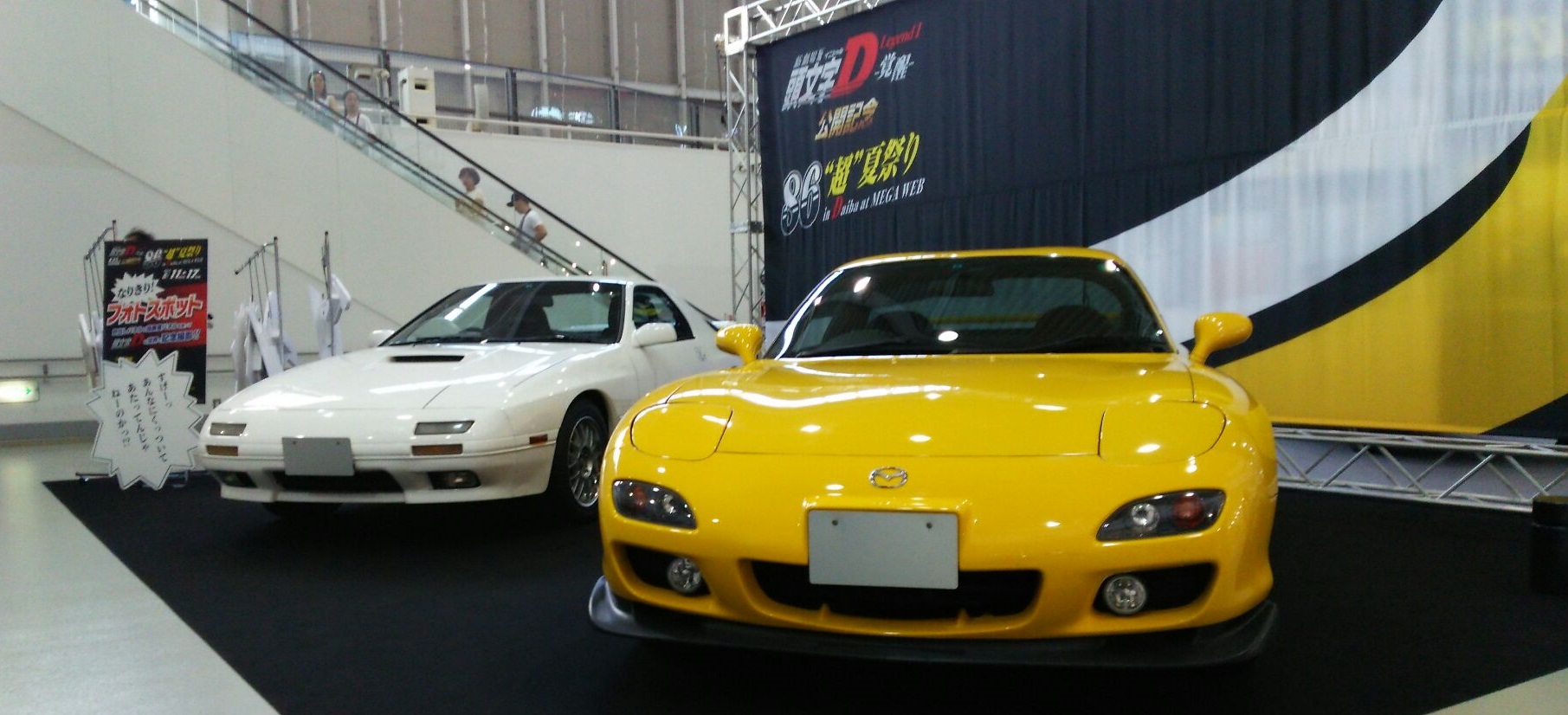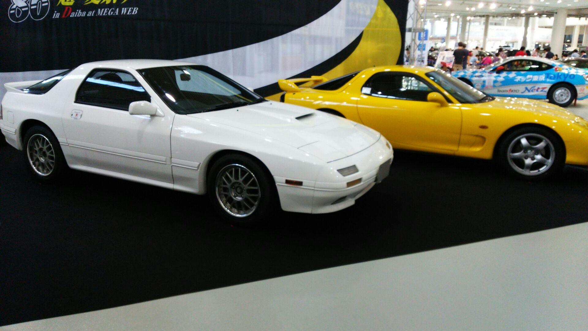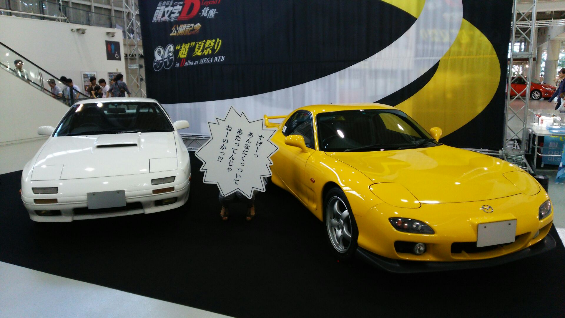 ちゃんと並べて展示してくれてて嬉しかった~。何度見てもFD・FCは格好いいですね!この白黄のセットが萌~~~!!(>_<)私が行ったのは15日だったのですが、この日は箱根のレンタカー屋さん、fun2driveさんのFD、FCが展示されてました。16日に言った方のお話だと、啓介はメガ進化してプロD仕様に、アニキのFCもステッカーがちゃんと貼ってあるD仕様の車になってたそうです。そっちも見たかったな~~!