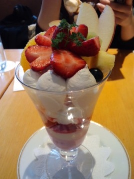 写真は帰りに資生堂パーラーで食べた春のフルーツパフェ。