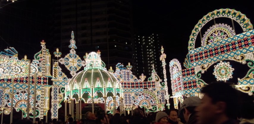 毎年、ルミナリエは少しずつ形や色が変わっているのですが、今年はなんだかカラフル。青や緑の光がちょっとポップな印象で新鮮でした。