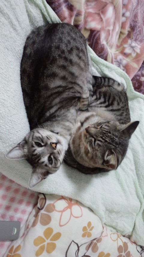 どっちも男の子(去勢はしてます)で、同じお母さんから同時期に生まれた兄弟なんですけどね~。まあ、女の子より男の子のほうが、去勢すると甘えん坊になりやすいらしいので、傾向通りということなのかもしれませんが…あまりに仲良しすぎるので二匹のらぶらぶタイムが始まると