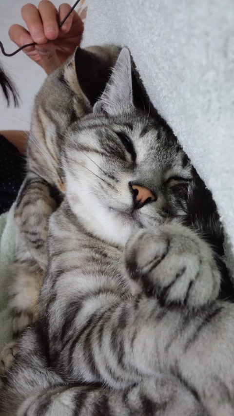 こんな寝方する猫、あまり聞かないのですが…らぶらぶです。