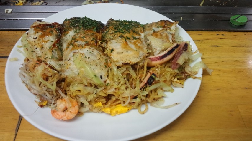 広島のお好み焼きは、大阪のお好み焼きと違って皮が薄くてそばが入っていて野菜たっぷり。